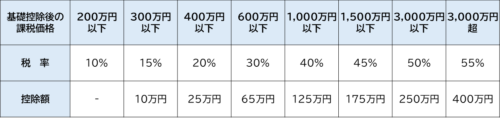 この800万円に対する贈与税は下表の税額表、税率40%・控除額125万円に該当します。