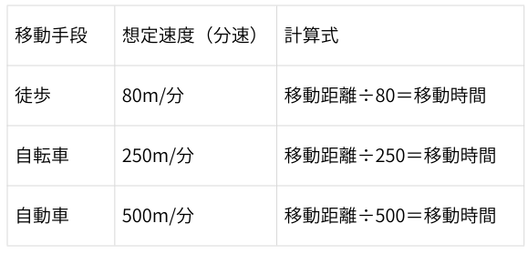 今回はその根拠と、徒歩だけでなく自転車や自動車での移動時間についてもご紹介します!